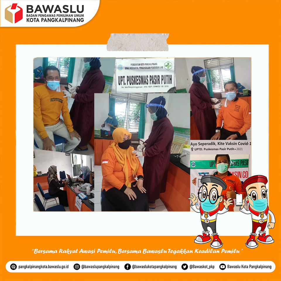 Pasca mengikuti pelaksanaan Program Vaksin Covid-19 Tahap I pada 13 April yang lalu, hari ini 11 Mei 2021 jajaran Sekretariat Bawaslu Kota Pangkalpinang kembali mengikuti program Vaksinasi Covid-19 Tahap II yang di fasilitasi oleh Dinas Kesehatan Kota Pangkalpinang bertempat di Puskesmas Pasir Putih. Vaksinasi ini diikuti jajaran Bawaslu Kota Pangkalpinang mulai dari Pimpinan, Pejabat serta seluruh Staf Sekretariat.